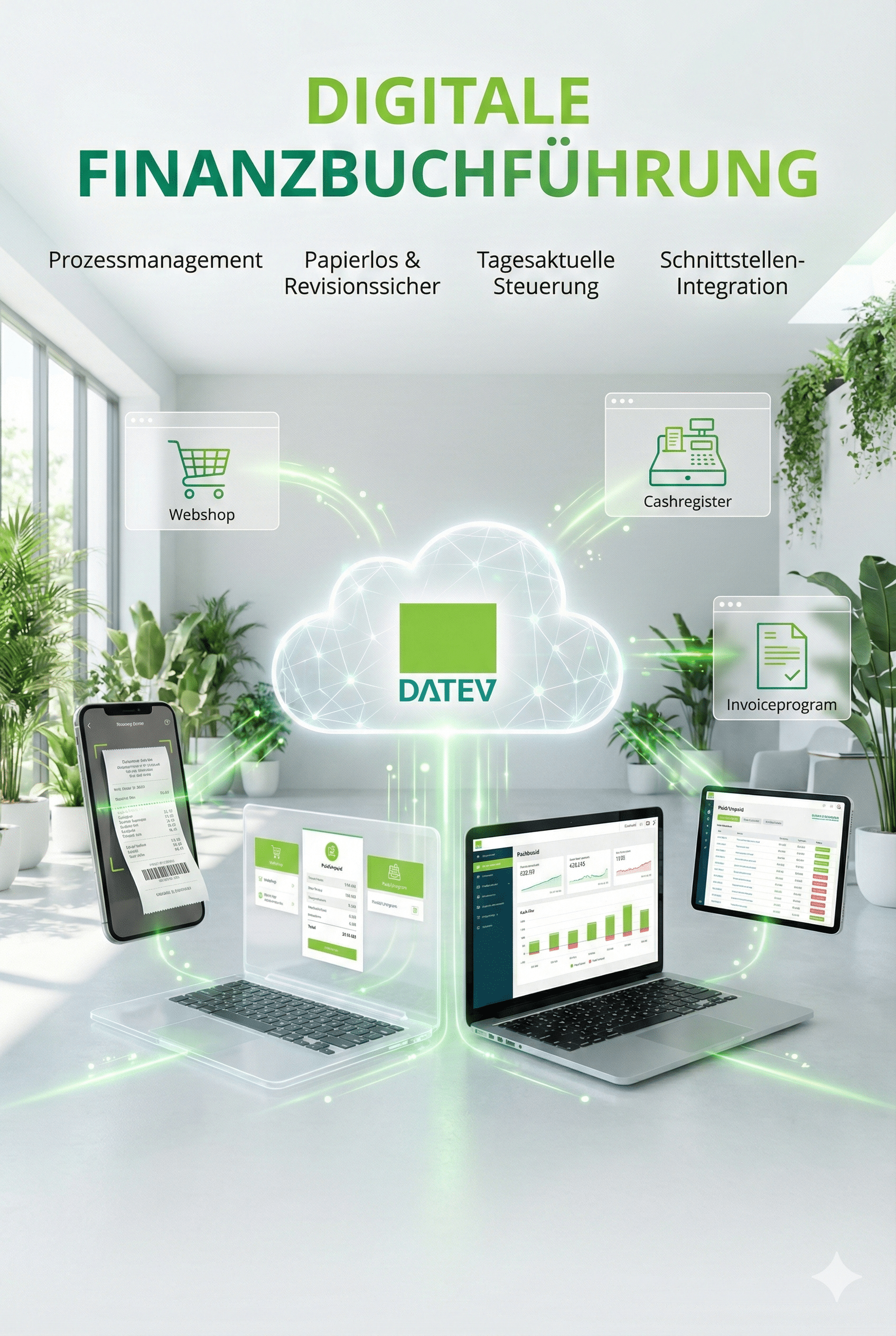Die Finanzbuchführung ist das Herzstück deines Rechnungswesens. Wir verstehen sie nicht als Datenerfassung, sondern als digitales Prozessmanagement. Durch den Einsatz von Schnittstellen und Cloud-Lösungen (wie DATEV Unternehmen online) reduzieren wir manuellen Aufwand auf ein Minimum.