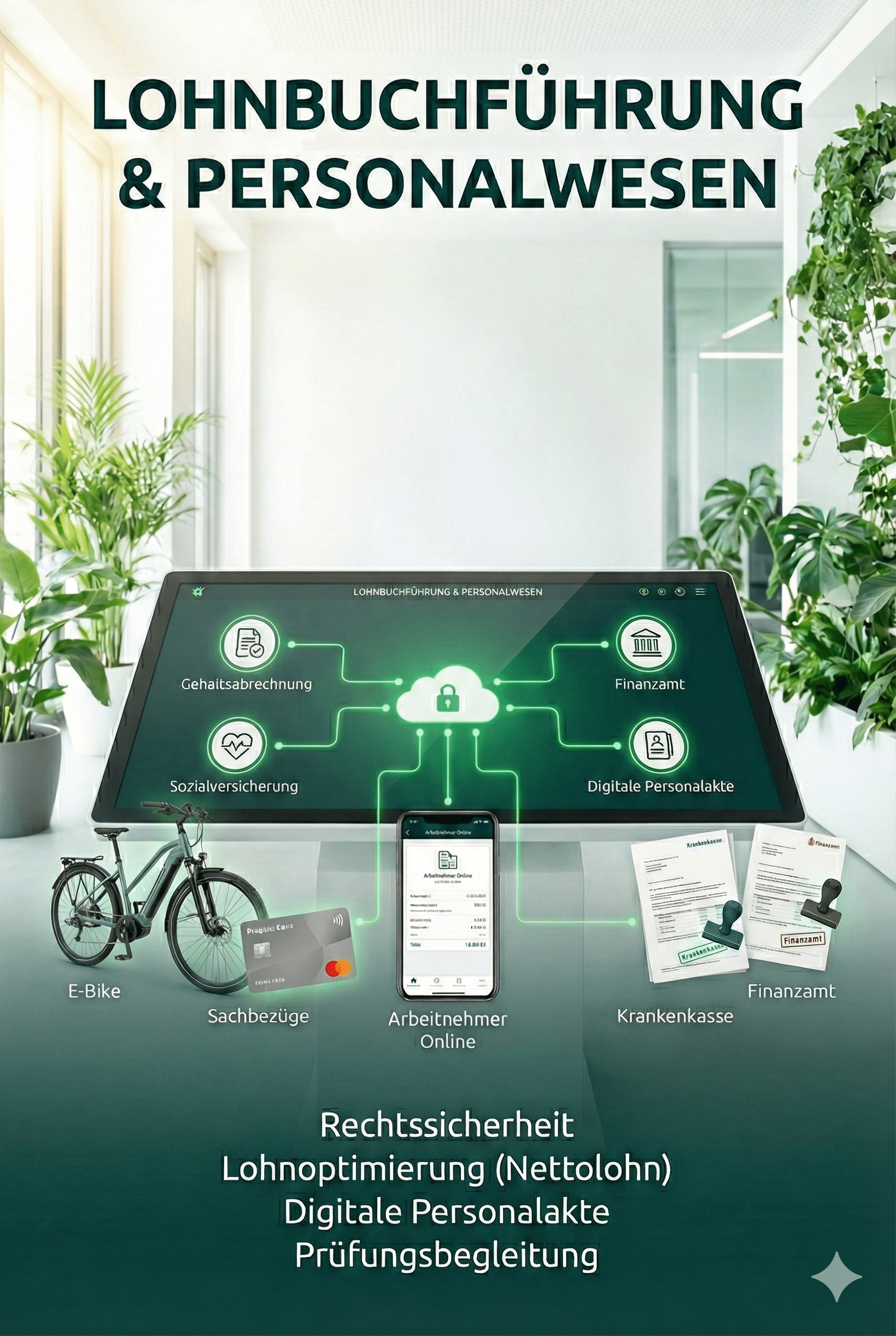 • Lohnoptimierung (Nettolohn): Wir beraten dich proaktiv zu steuerfreien oder pauschalen Arbeitgeberleistungen (z. B. Sachbezüge, E-Bike-Leasing), damit bei deinen Mitarbeitern mehr Netto vom Brutto bleibt.